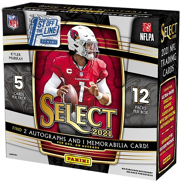 The 1st Off the Line 2021 Select NFL Trading Card Box contains 5 cards per pack, 12 packs per box!