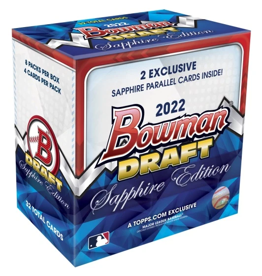 2022 Bowman Draft gets the sapphire treatment with the entire Chrome Prospect checklist from the 2022 Draft release printing on exclusive Blue Chrome Sapphire stock!