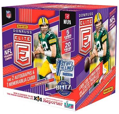 The 1st Off the Line 2022 Panini Donruss Elite NFL Trading Card Box contains 5 cards per pack and 20 packs per box!