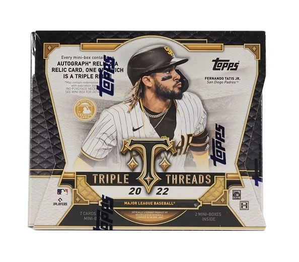 Triple Threads Baseball returns for 2022 featuring all-time retired greats, current stars of the game, and an elite rookie class. Showcasing an array of multi-relic cards, autograph relics and exclusive high-end hits, Triple Threads delivers game-used greatness. Each case is guaranteed to include a 1-of-1 Autograph Relic Card, and an Autograph Relic Combo Card featuring 3 or more players.