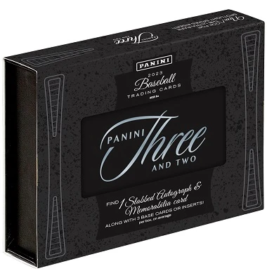 The 2023 Panini Three and Two Baseball Trading card Box (Hobby) contains 5 cards per pack and 1 pack per box!