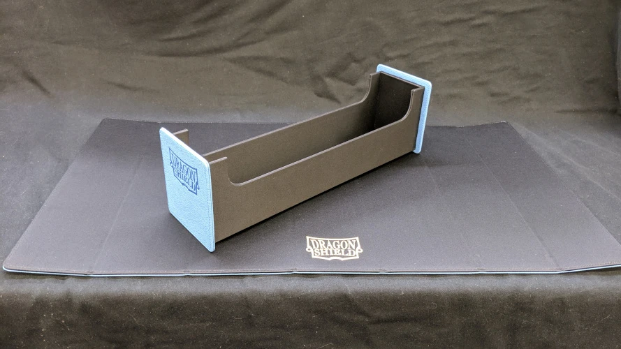 - Magnetic deck box that separates into a satin lined 667x350mm (26 1/4″ x 13 3/4″) playmat and deck tray.