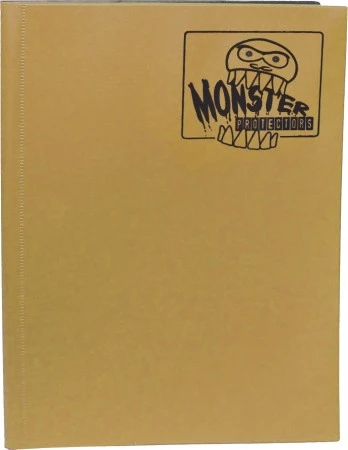 Matte Gold Monster Protectors binder. Contains twenty cushioned 9-pocket pages. Side loading pockets prevent cards from slipping out. Pages are sewn in for added durability. Fits Magic, Yu-Gi-Oh!, Pokemon, Race for the Galaxy, Thunderstone, Pandemic, etc (You cannot add pages to this binder.)