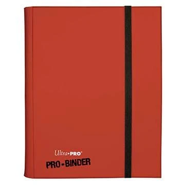 9-pocket Red PRO-Binder with embossed middle black web material gives cards a classic framed look. Side loading pocket design to prevent cards from easily falling out. Elastic strap holds the binder shut when not in use. All materials made from archival-safe acid-free non-PVC material. Holds 360 cards in Ultra Pro Deck Protector sleeves.