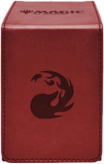 Give your valuable Magic: The Gathering collection the home it deserves with these premium Alcove Flip Box storage cases made with a matte leatherette finish featuring “Mountain Mana” symbol in dark red from the popular trading card game. The Alcove Flip Box can hold up to 100 double sleeved cards with its lid secured by strong magnetic closures utilizing multiple magnets for extra protection. The lid can be undone on both sides of the box to reveal dual thumb notches for easy access to your deck of cards. The Alcove Flip Box is a great storage device for organizing and protecting your collection at home or on-the-go at your next gaming session!