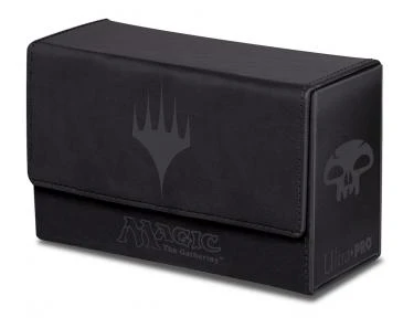 Leatherette material with debossed Planeswalker and Mana Symbols. Magnet closure. Soft inner liner protects cards. Holds up to 200 collectible cards in Ultra PRO Deck Protector sleeves. Adjustable divider allows the dual compartments to hold either 2 decks of 100 cards or 2 deck of 80 cards plus Oversize cards.