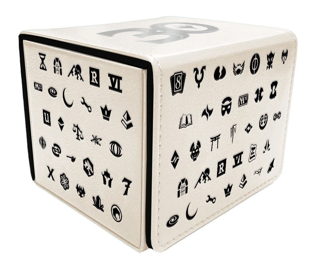 Alcove Edge Deck Boxes for Magic: The Gathering feature a vibrant, full-color leatherette finish, strong magnetic closure, and dual thumb notches for easy access to your deck. This deck box holds up to 100 standard size trading cards double-sleeved in Ultra PRO Deck Protector sleeves. Officially licensed Alcove Edge Deck Box for Magic: The Gathering 30th Anniversary. Features exclusive artwork. Strong magnetic closure featuring multiple magnets to hold the lid securely shut. Holds up to 100 standard size cards double-sleeved. Lid can be detached from both sides of the box to reveal dual thumb notches for easy access to your deck.