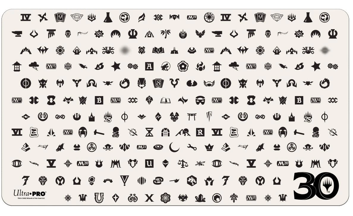 Holofoil Playmats featuring popular Magic: The Gathering artwork printed on a shimmering material with stitched edges. Made with a soft fabric top to reduce damage to cards during play and a non-slip rubber backing to keep the playmat from shifting during use, playmats enhance the gameplay experience. With dimensions of approximately 24 in. x 13.5 in., a playmat also makes an excellent oversize mousepad for home or office. Officially licensed Holofoil Playmat for Magic: The Gathering 30th Anniversary. Features exclusive artwork. Measures approximately 24 in. x 13.5 in. and lies flat. Soft fabric top protects cards during gameplay. Non-slip rubber backing keeps the playmat from shifting during use.