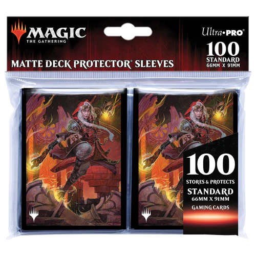 The 100ct Deck Protector® sleeves for Magic: The Gathering feature full-color artwork and are made with our proprietary ChromaFusion Technology™ to prevent peeling. Archival-safe polypropylene materials ensure you can sleeve your cards with confidence. Sized for standard size trading cards measuring 2.5 in. x 3.5 in. The matte finish offers a glare-free, camera ready play experience!