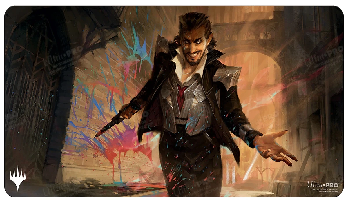 Playmats feature popular Magic: The Gathering Commander artwork of Anhelo the Deacon by Aurore Folny. Made with a soft fabric top to reduce damage to cards during play and a non-slip rubber backing to keep the playmat from shifting during use, playmats enhance the gameplay experience. With dimensions of approximately 24 in. x 13.5 in., a playmat also makes an excellent oversize mousepad for home or office.