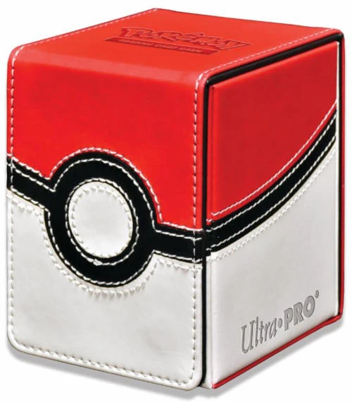 The Poke Ball Alcove Flip Box can hold up to 100 double sleeved cards with its lid secured by strong magnetic closures utilizing multiple magnets for extra protection. The lid can be undone on both sides of the box to reveal dual thumb notches for easy access to your deck of cards. The Poke Ball Alcove Flip Box is a great storage device for organizing and protecting your collection at home or on-the-go at your next gaming session!